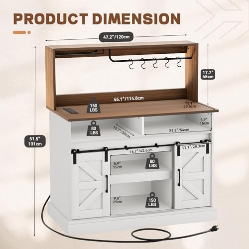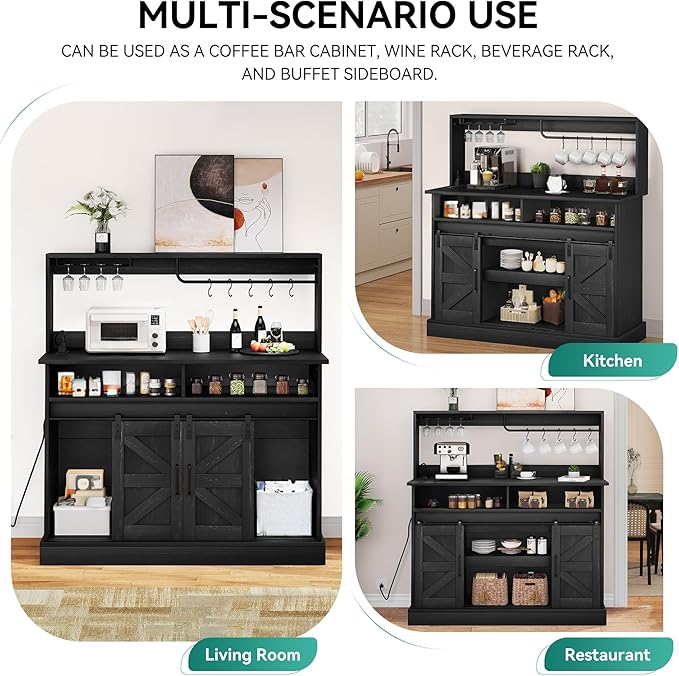 Add rustic charm and modern functionality to your kitchen or dining space with this Farmhouse Coffee Bar Cabinet. Featuring sliding barn doors, a built-in power outlet, and ample storage, it’s the perfect combination of style, convenience, and practicality for any home.