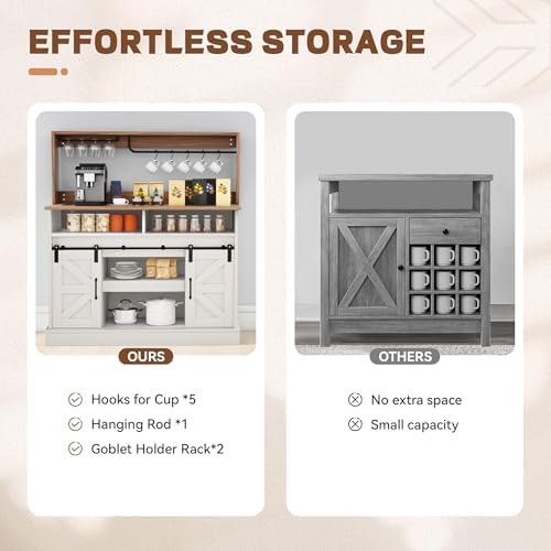 This multi-functional farmhouse coffee bar cabinet adds warmth, organization, and convenience to any space. Whether you’re hosting, entertaining, or relaxing with your morning brew, it’s the perfect centerpiece for your home.
