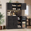 Perfect as a tea & coffee bar, kitchen pantry, or storage station, this tall cabinet offers versatile use. The wide countertop provides additional workspace, while the extra hooks help you hang kitchen tools or mugs neatly.