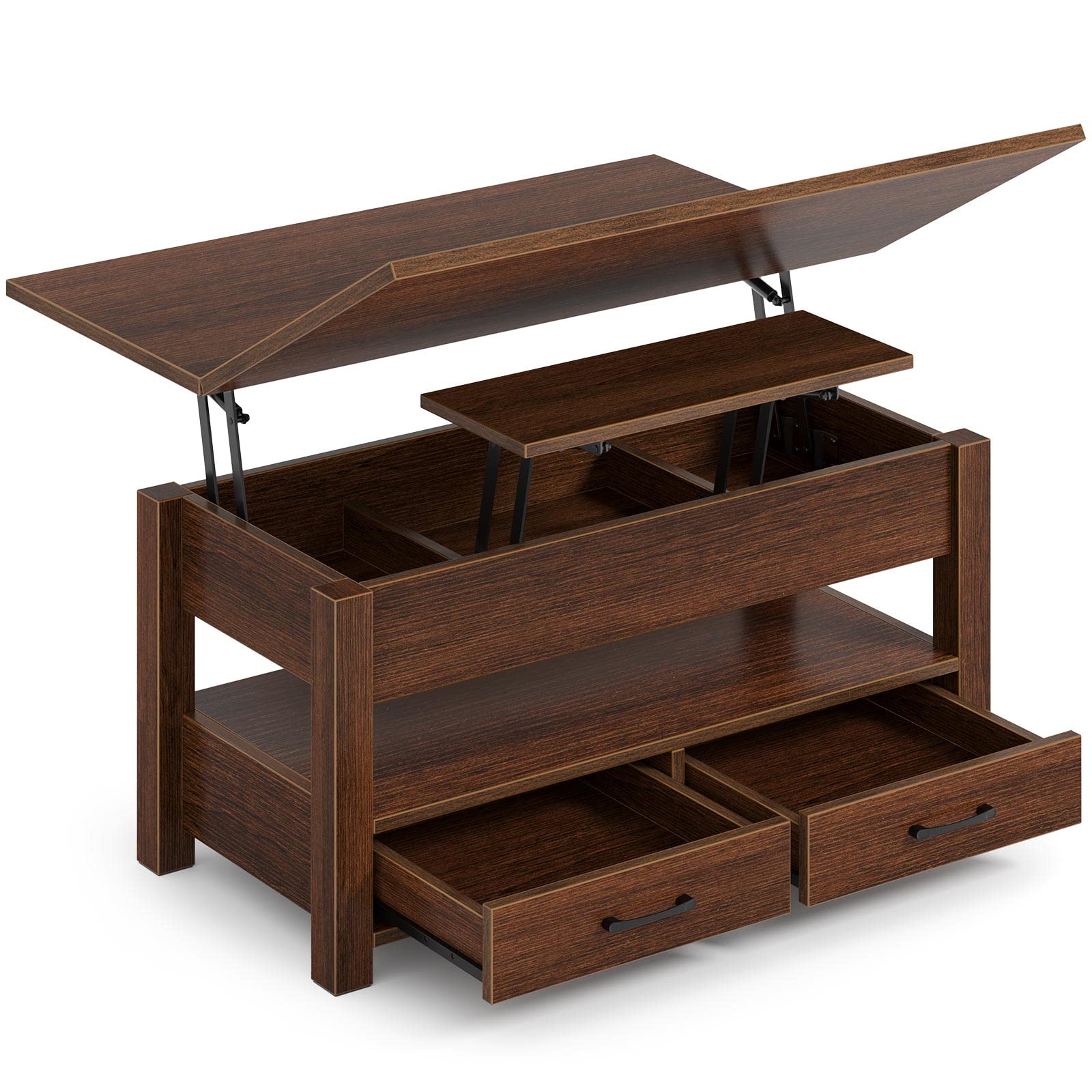 - [Large Storage Spaces] Beneath the handy lift-top surface are 3 hidden storage areas that provide you with the perfect spot to stow away any around-home essentials you typically wouldn't want your guests to see. 1 open shelf provide perfect place for you to display exquisite decorations. 3 sliding drawers expand your available storage space for an uncluttered living room.