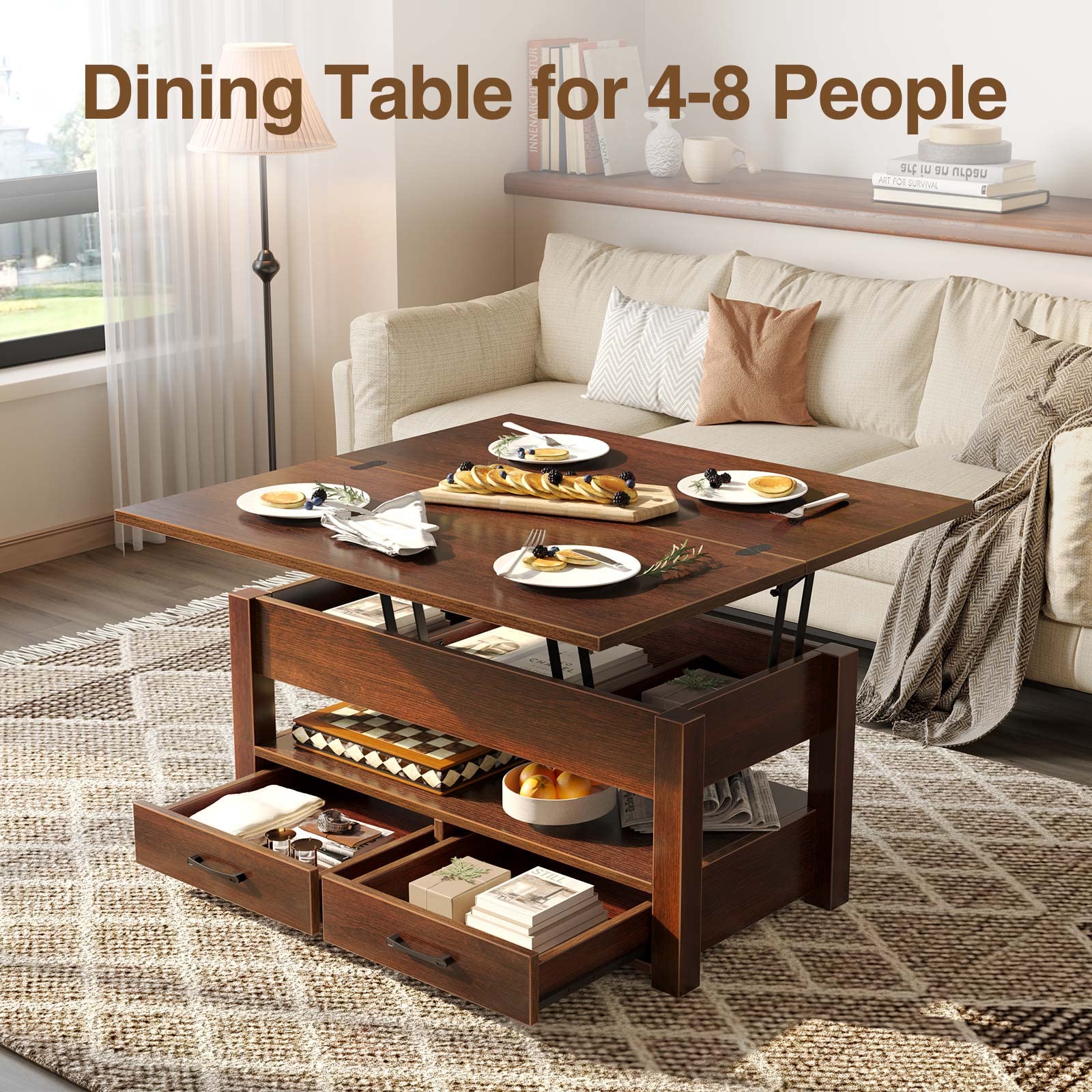 - [Split Lift-top Design / 3 Ways to Use] The split table top can be lifted in different directions to offer two independent-use spaces, allowing you and your family to use the table separately without interruption. The larger table top board can be turned 180 degrees freely for dining. So this coffee table is not only a functional table in the living room or reception room but also a home office desk or dining table.