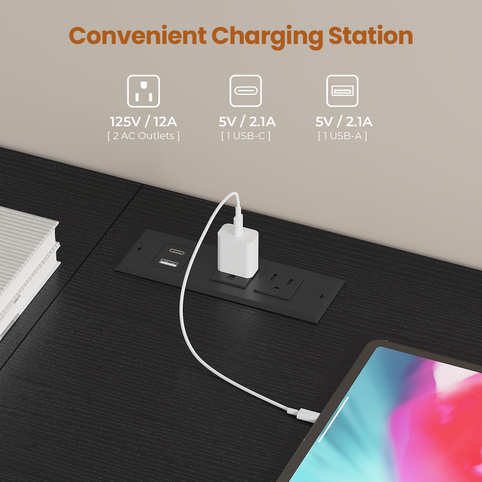 - 【Convenient Power Outlets】Equipped with 2 standard power outlets, 1 USB-A port and 1 Type-C port, this TV stand provides multiple charging options to ensure all your devices (TV boxes, media players, game consoles, speakers, etc.) are always ready to go while keeping the wires tidy.