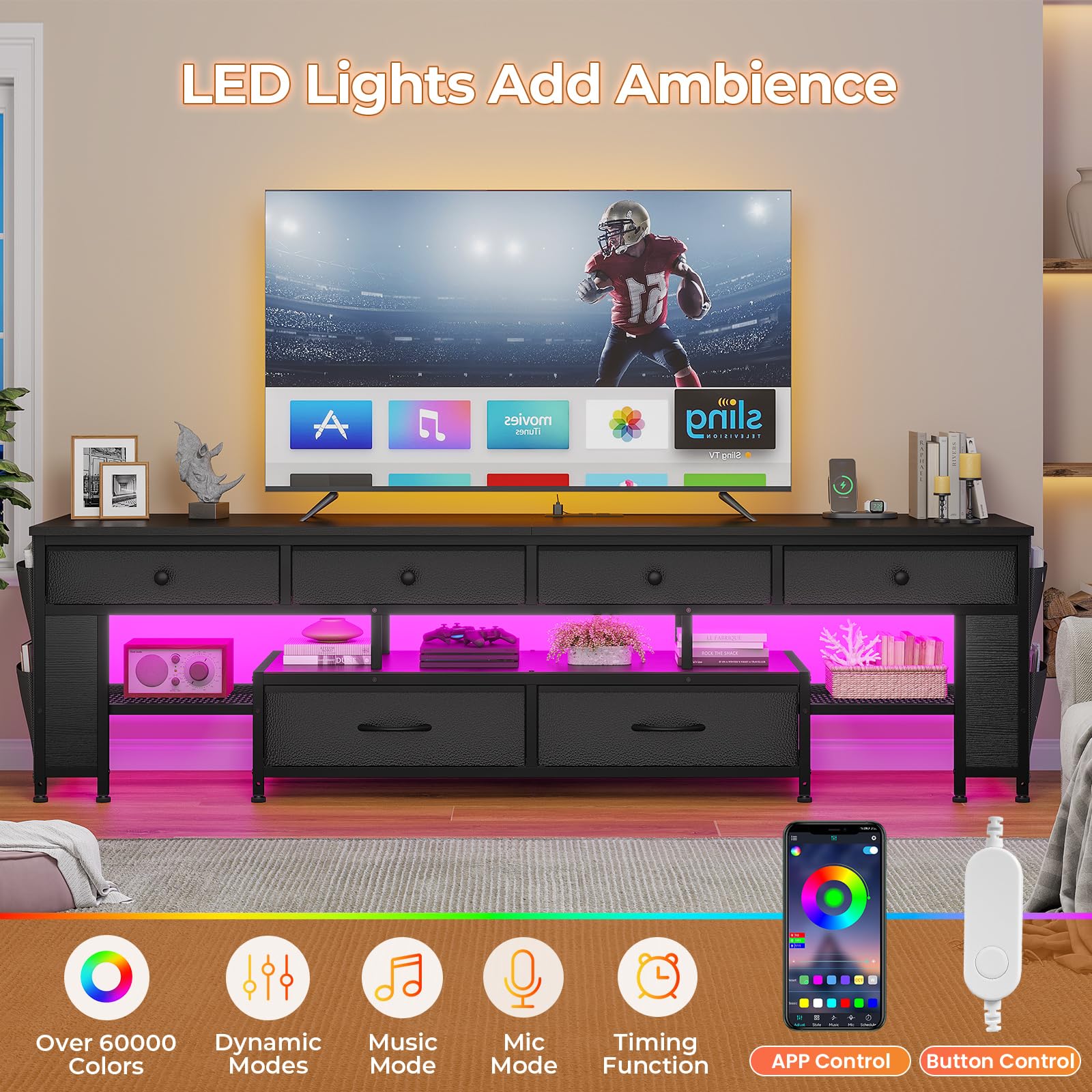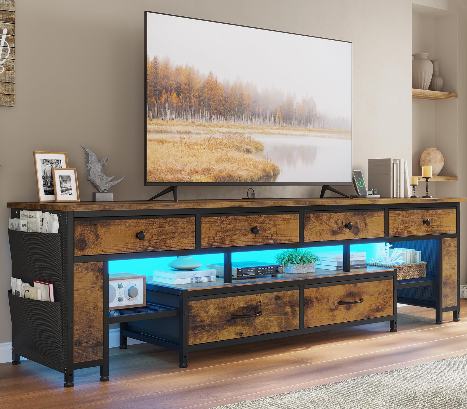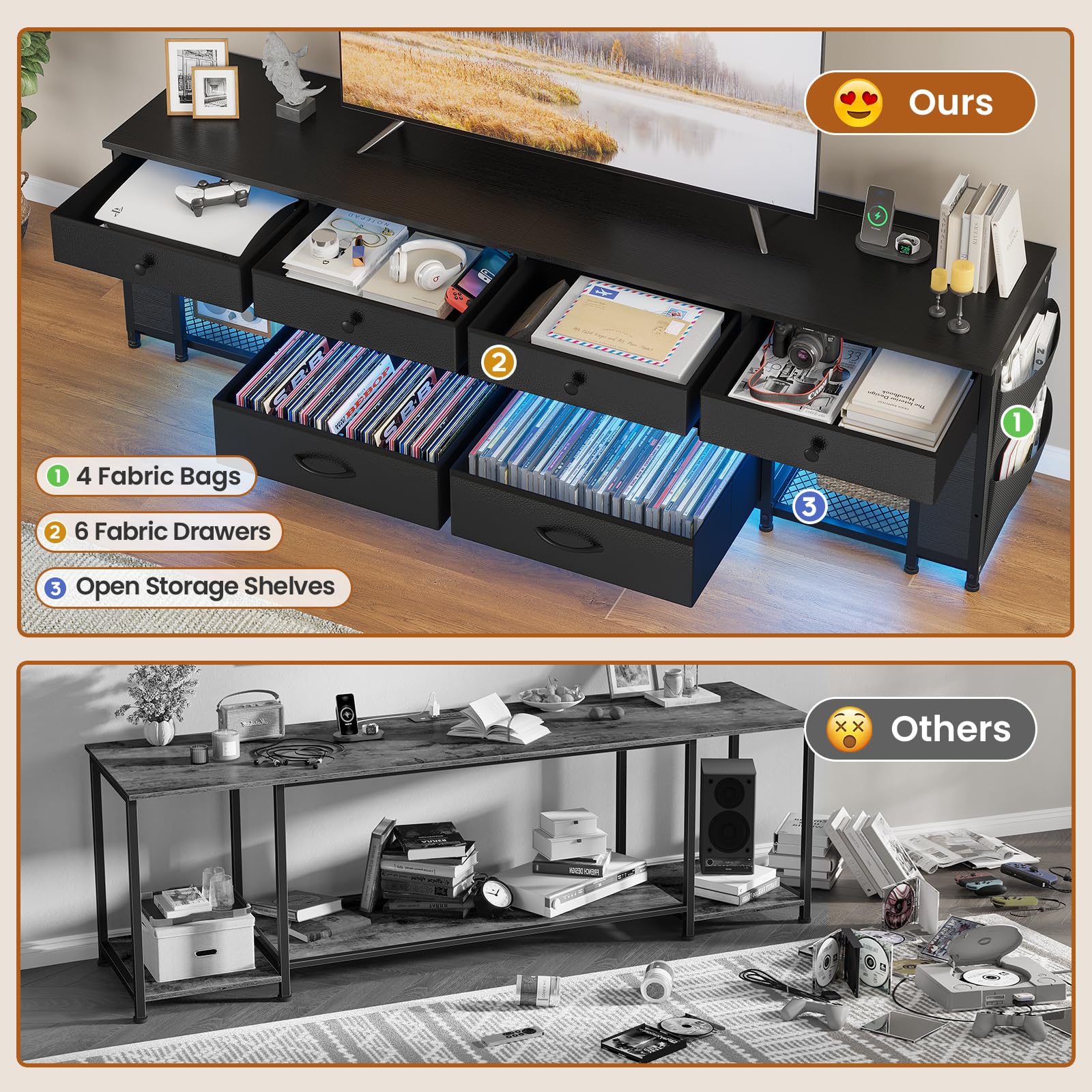 - 【Various Storage Spaces for Classified Storage】With 6 fabric drawers, 4 fabric pockets, open shelf and 2 height-adjustable metal mesh shelves, this TV stand offers a variety of forms of storage space suitable for storing different sizes and types of items to meet diversified storage needs, easy to access and avoid confusion.