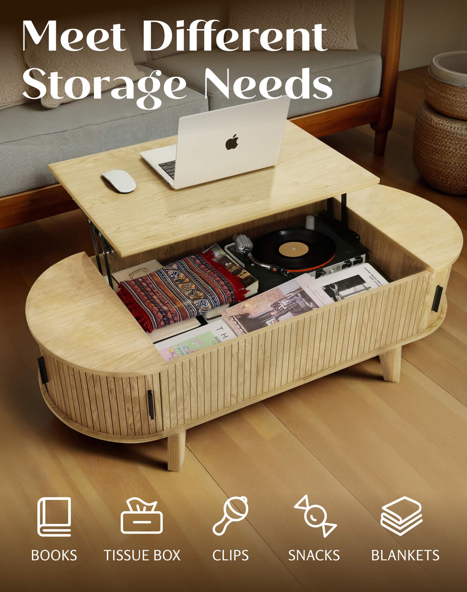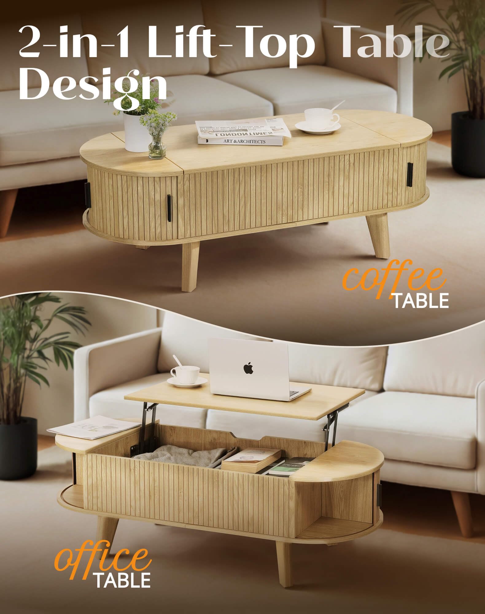 - AMPLE STORAGE CAPACITY: Unique coffee table features a spacious design with hidden compartments and open shelves; Ideal for storing books, snacks, and remotes; Keeps your living area organized without sacrificing space