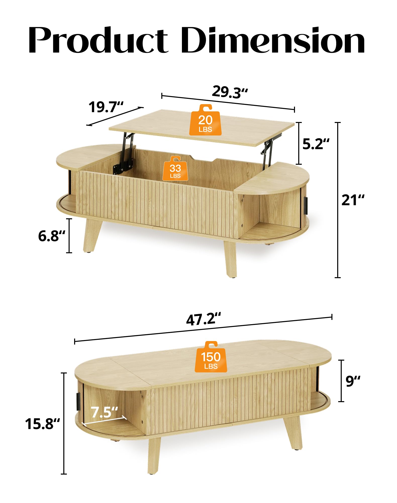 - VERSATILE LIFT MECHANISM: Lift top coffee table includes a premium hydraulic support rod that adjusts smoothly from 15.8 in H to 21 in H; Functions as both a coffee table and a work desk to fit your lifestyle needs