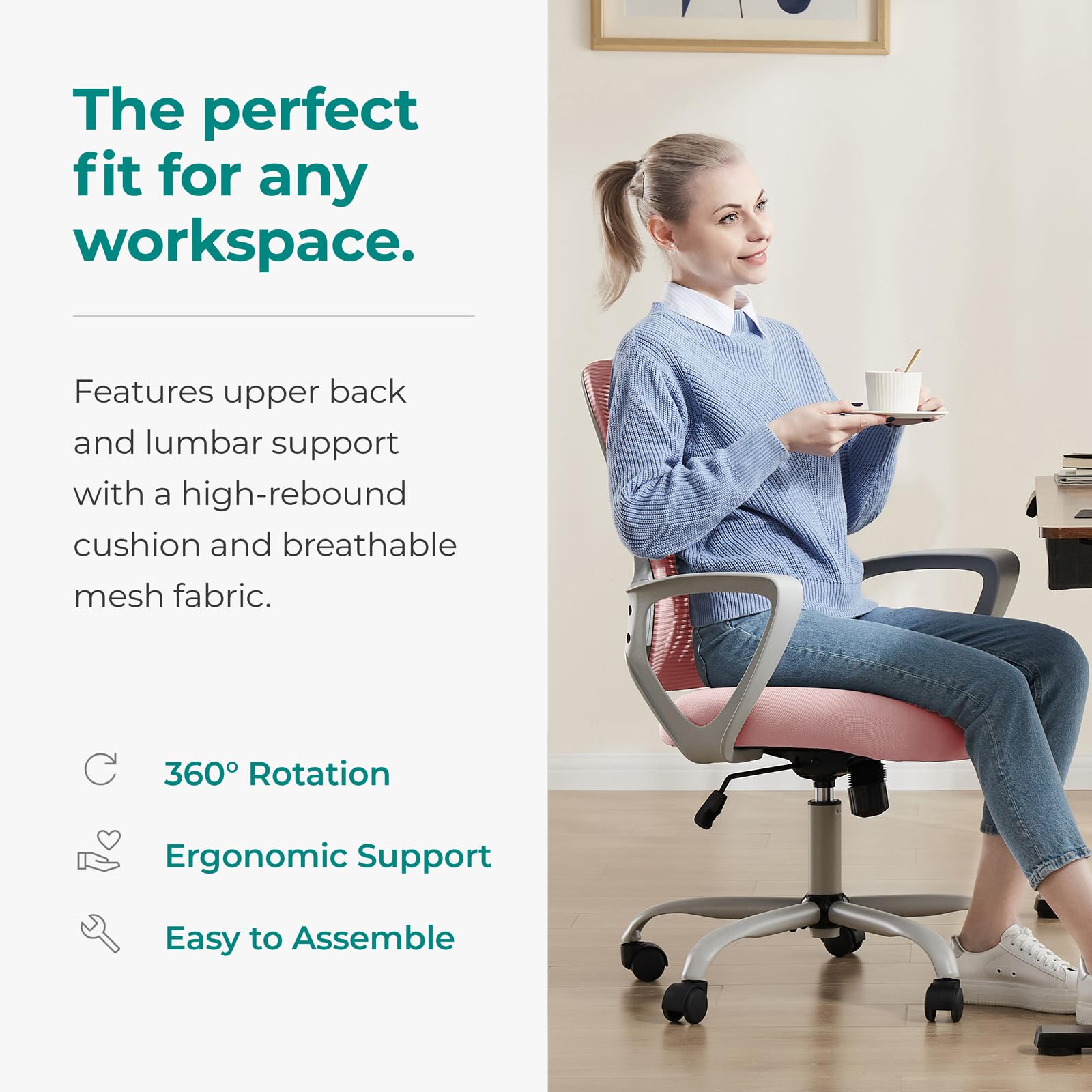 - 【All Day Comfort】The desk chair has a soft high-density sponge seat, which is covered with durable & breathable mesh fabric and has good elasticity. It is difficult to deform to keep them comfortable for long hours. Perfect for your home office, bedroom, classroom, school, computer desk, apartment, guest workstation, gaming room, or conference room. This office chair is the perfect gift for family and friends.