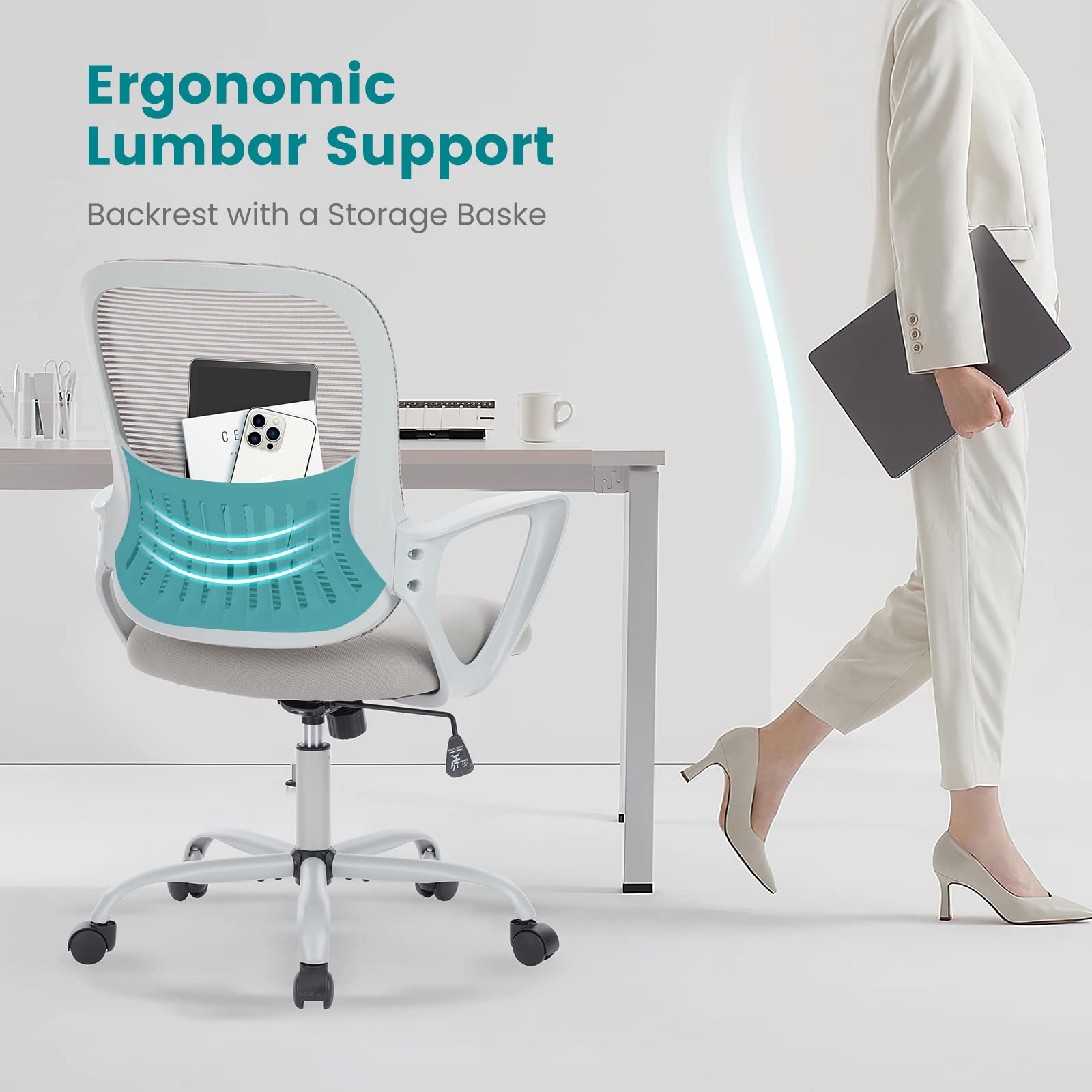 - 【Ergonomic Backrest】 The overall design of this office chair is ergonomic, the backrest and lumbar support fit the natural curve of your lower back, let your body and mesh chair perfectly fit, and take the spinal pain away from your body. It provides comfortable support, which helps you maintain a relaxed posture during long hours of work.
