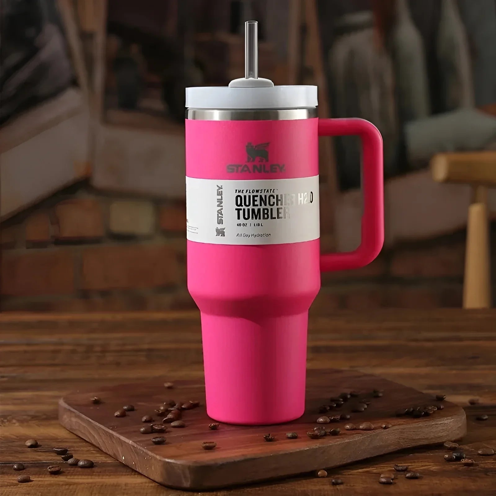 Whether you prefer small sips or maximum thirst quenching, Stanley has developed an advanced Flow State lid, featuring a rotating cover with three positions: a straw opening designed to resist splashes with a seal that holds the reusable straw in place, a drink opening, and a full-cover top for added leak resistance. We’ve also included an ergonomic, comfort-grip handle, so you can easily carry your ice-cold water to work, meetings, the gym or trips out of town.